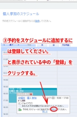③予約をスケジュールに追加するには登録してください。と表示されている中の「登録」をクリックする。