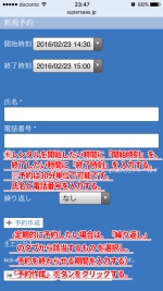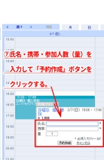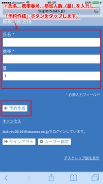⑦氏名・携帯・参加人数(量)を入力して「予約作成」ボタンをクリックする。