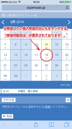 ➁参加したい個人参加の日にちをタップする。 (参加可能日は○が表示されております)。