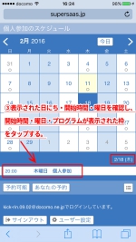 ③表示された日にち・開始時間・曜日を確認し、「開始時間・曜日・プログラム」が表示された枠をタップする。
