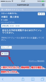 ④表示された日にち・開始時間・曜日を確認し、 「登録」をタップする。