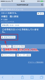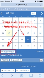 ④予約したい日にちをタップして、「新規予約作成」ボタンをタップする。