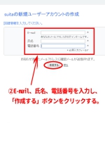 ➁E-mail、氏名、電話番号を入力し、「作成する」ボタンをクリックする。